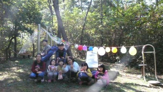 3시간 동안 김장비닐봉투를 이용해 모둠별로 텐트를 만들어보았다. 자리 선택도 아이들의 몫, 꾸미는 것도 방법도 모두 아이들 스스로 모둠끼리 상의해서 결정한다. 풍선도 불어 줄에 묶고, 색종이로 모양을 만들어 텐트 위에 붙인다. 산 곳곳 바닥에 떨어진 다양한 자연 재료도 이용해 모둠 텐트가 완성되었다. 놀이 중간에 도토리나 알밤 등 비상식량을 찾아 텐트 안에 넣는 아이들을 보고 있자니 마을 모험가가 다 되었다는 생각이 들었다.