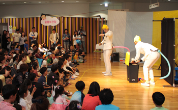 뜨거운 반응을 보였던 공연 중 <투 몽키 쇼!>는 어린이문화원 로비에 와글와글 부모, 아이 할 것 없이 함께 모여 배꼽 빠지게 웃고 즐길 수 있었다. 두 원숭이들이 우주에서 내려와 아름다운 지구를 탐사하러 오게 되면서 지구의 아름다움을 알아가는 과정을 보여준다. 엉뚱하고 기발한 아이디어를 통해 사물을 창의적으로 해석하고, 때론 마술처럼 또는 안무처럼 퍼포먼스를 선보이면서 아이들의 시선이 자연스럽게 고정되었다. 바나나를 뒤집어 쓴 원숭이 듀오의 표정과 동작에 따라 아이들의 눈과 입은 절로 열리고, 정지화면처럼 고도의 집중력으로 미동도 없이 감상한다. 대사 하나 없는 우스꽝스러운 몸동작을 통해 아이들은 감정을 읽고 환히 웃으며 아빠엄마에게까지 웃음을 전염시킨 즐거운 공연시간이었다.