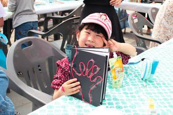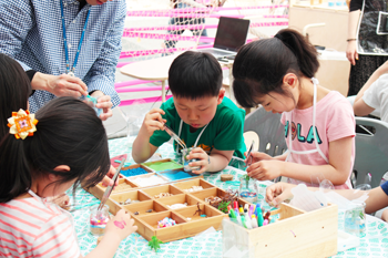 무엇보다 전시연계 프로그램인 <손 안에 작은 바다>는 ‘할머니의 여름휴가’라는 동화 속 이야기를 바탕으로 아이들이 자기만의 바다를 만들어보는 체험을 했다. 체험 속 배경이야기는 여름에 한 번도 휴가를 가보지 못한 새하얀 피부의 할머니가 무료하게 보내고 있다가, 여름휴가 때 새까맣게 탄 손주가 건넨 소라 껍데기로 푸른 바다를 접하면서 시작한다. 신세계를 접한 할머니는 이를 계기로 여름휴가 때 바다를 간 후 할머니 역시 새까매지면서 바다를 통해 평안을 느낄 수 있었다는 스토리다. 아이들도 역시 할머니가 접한 여름휴가의 바다처럼 휴식과 위로를 선물하고자 직접 바다를 만들고 기념품으로 간직해본다.