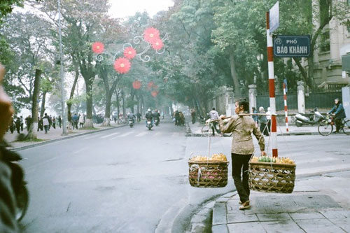 새벽 6시에서 7시쯤, 숙소에서 무작정 나와 걷다가 아침안개가 널리 퍼져있었던지라 몽롱한 기운을 불어넣은 상태였어요. 거기다 양쪽 큰 꽃 장식들이 잘 어울러져 있었고 아낙이 과일바구니를 들고 길을 걷고 있는데 베트남의 아침을 담아낼 수 있을 것 같아 얼른 카메라를 꺼냈었죠. 이건 제가 필름으로 두 번 찍은 사진인데요. 찍고 바로 인화를 못하니까 그 당시에는 확실하게 확인을 못해서 답답했었죠. 한국에 와서 인화해보니까 첫 번째 사진은 초점이 떨어져나가 있어서 엄청 아쉬웠어요. 초점만 맞았으면 완벽했을 것 같았거든요. 그리고 두 번째 사진을 봤는데 초점이 제대로 맞춰 있어서 얼마나 좋았는지 몰라요.