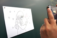 수업이 진행되는 한 시간 동안 그림을 그려 넣고 동영상을 만들고 함께 작품 감상까지 해야 하는 일정이다. 한 시간이 빠듯하다. 학생들이 그림을 그릴 수 있는 시간은 길어야 15분. 각자 맡은 가사를 보며 별 고민 없이 쓱쓱 밑그림을 그려 나간다. 그들이 그려가는 미완성된 그림과 가사의 구절을 맞춰 가며 구경하는 재미가 쏠쏠치 않다.