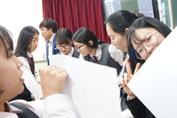 지금부터는 조대호 강사가 실력을 발휘해야 할 시간. 그가 겉옷을 벗어던지고 학생들의 작품을 휴대폰 카메라에 담아낸다. 2-4반 여고생들이 그의 옆에서 자발적 조수 역할을 한다. 순서대로 그림을 나열하고 정리 하면서 서로의 그림을 감상한다. 수준 높은 그림이 나오니 “올~~~~ 고퀄!고퀄!” 을 외친다.