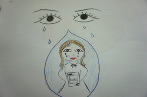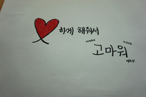 그림 하나하나 나름의 의미가 있고 창의적이라 감탄이 절로 나온다. ‘사랑은 내게 상처뿐이라’ 라는 그림에서는 한 소녀가 심장에 화살을 맞고 울고 있다. 주위의 배경도 소녀의 마음을 대변해 주듯 어둡다. 누군가 “내 마음이 더 아파” 라고 말했다. ‘나 가진 건 하나 없지만’이라는 가사의 그림은 마치 순정 만화의 한 장 면을 보는 듯하다. 용지의 반은 힘없이 고개를 숙인 남자의 모습이 그려져 있고, 나머지 반에는 한 푼도 들어 있지 않은 남자의 지갑을 그려 넣었다. 갑자기 깜찍한 캐릭터의 귀여운 남녀가 등장하자 언제 그랬냐는 듯 갑자기 목소리 톤이 높아진다. “꺄~~~~ 너무 귀여워” 빠르게 넘어가는 장면들마다 여고생스러운 감상평이 이어진다. 김범수의 절절한 보이스톤의 노래가 끝났다. 수업을 끝나는 종이 울렸는데도 노래 가사와 그림을 매칭 시키느라 쉽게 자리를 뜨질 못한다. 다음에 한 번 더 하자는 의견이 나왔다. 곧이어 빅뱅을 하자고 하고, 투애니원의 노래를 하자고 하더니 순식간에 신청곡이 늘어난다. 아무래도 이 수업 한 번은 더 해 야 할 것 같다.