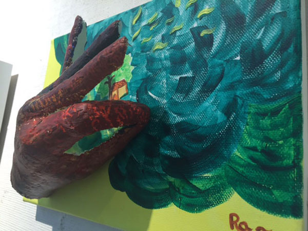 남도향토음식박물관에서는 지역특성화 문화예술교육 지원사업인 ‘엄마 꽃이 되다’ 결과발표회의 전시가 열리고 있었다. 그 곳에서 김옥진 강사를 만났다. 인사를 나누고 제법 규모가 큰 전시장 안을 함께 둘러보며 이야기를 나누었다. 우선, 전시회를 한 문장으로 표현하면 “색의 다양함”이다. 이채롭고 따뜻하고 자유로운 기운을 발산하는 작품들은 회화뿐만 아니라 석고, 실 등을 재료로 사용하여 다양하게 시도되었다. 결과발표회를 위한 전시회라기보다는 다양한 작가들의 이야기를 담은 그룹전처럼 느껴졌다. 그 느낌이 매우 특별하게 느껴졌다.
