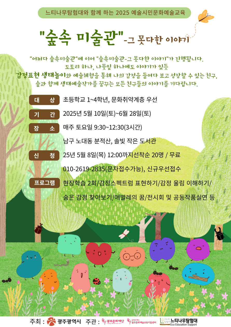 - 자연 안에서 문화예술을 통해 자신의 감정을 표현하고 서로소통하며 숲속전시회를 진행하는 프로그램