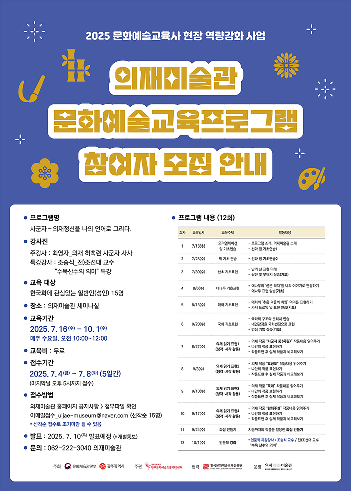 - 의재 허백련 선생님의 작품과 남종화에 관심 있는 예술 애호가, 연구자, 학생 등 다양한 방문객을 대상으로 지역 주민들의 문화 향유 공간으로 활용되고 있음