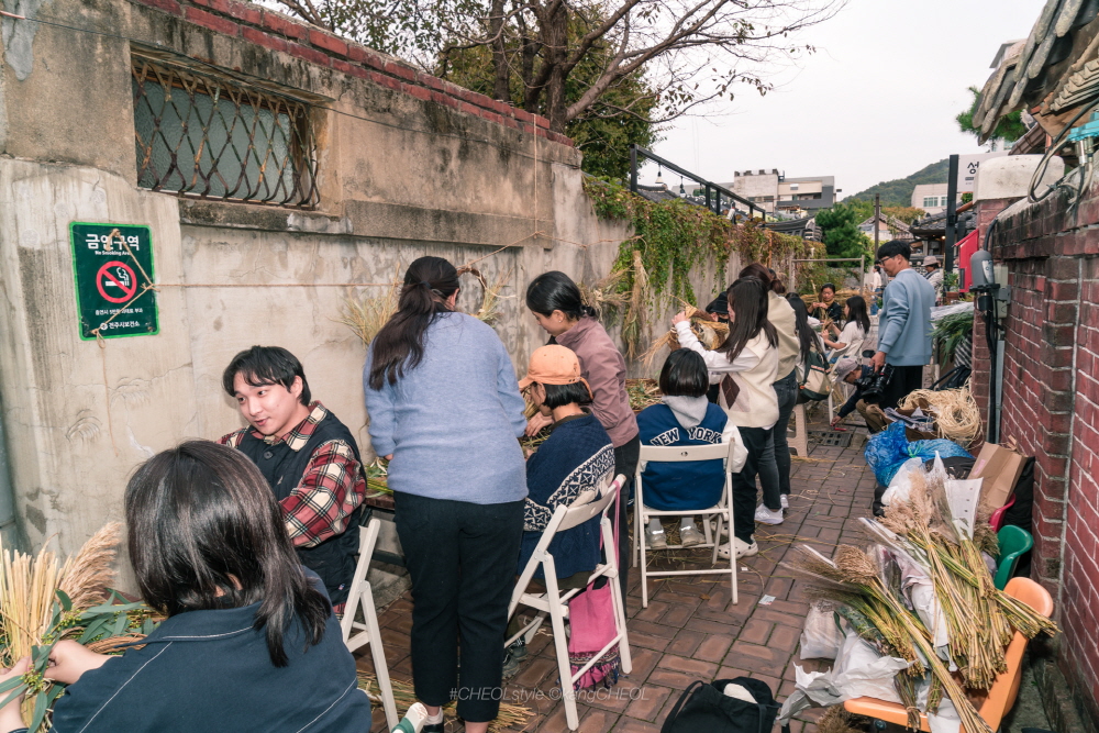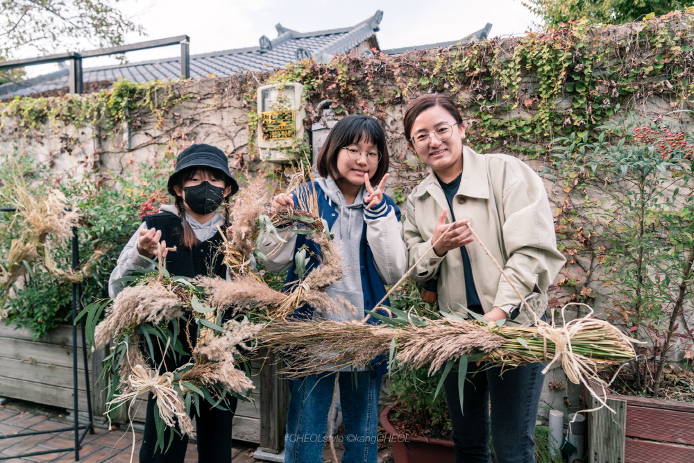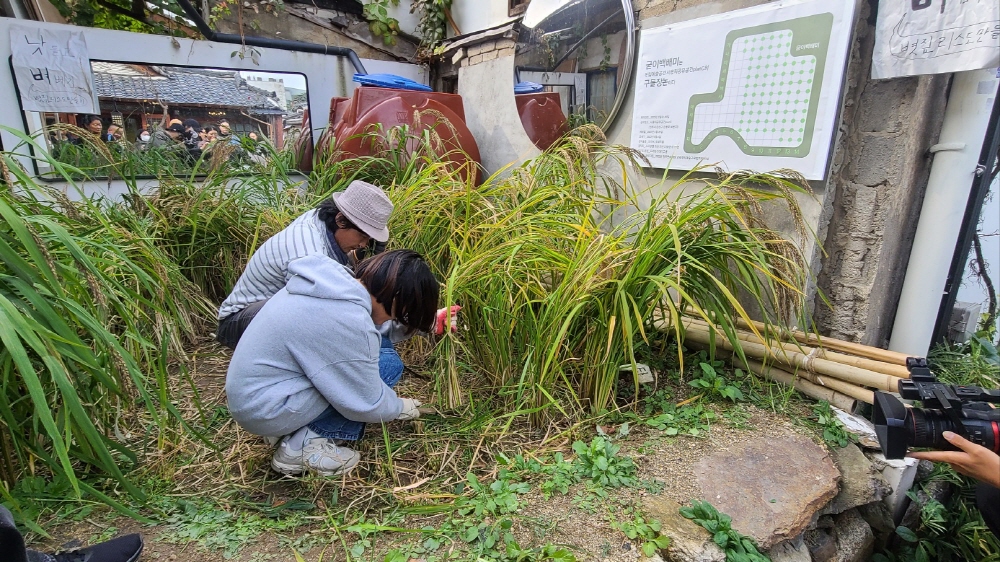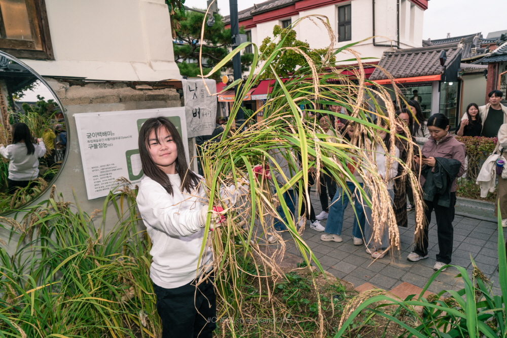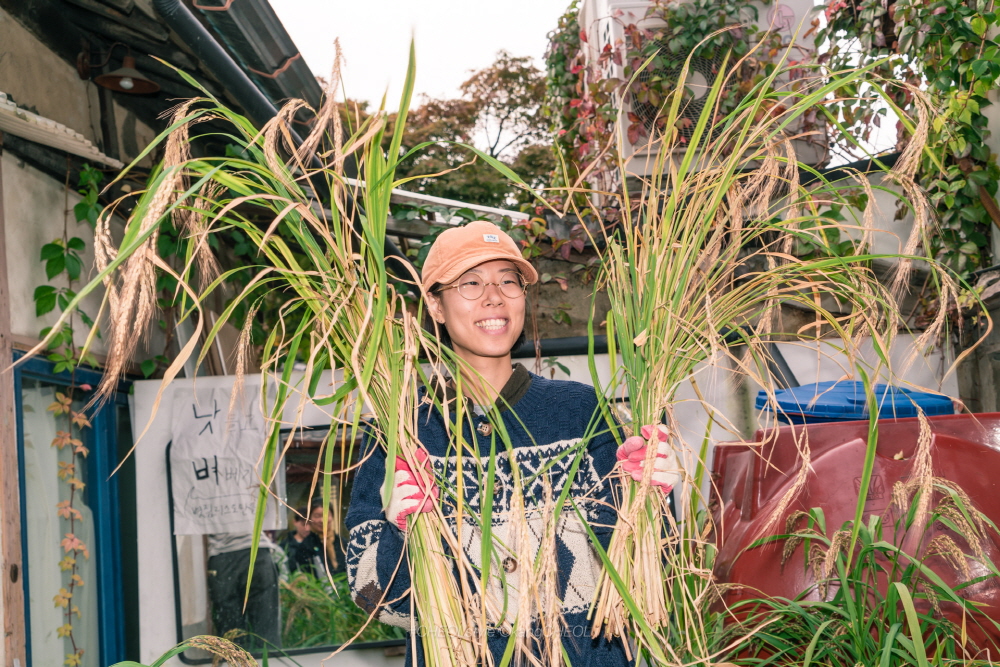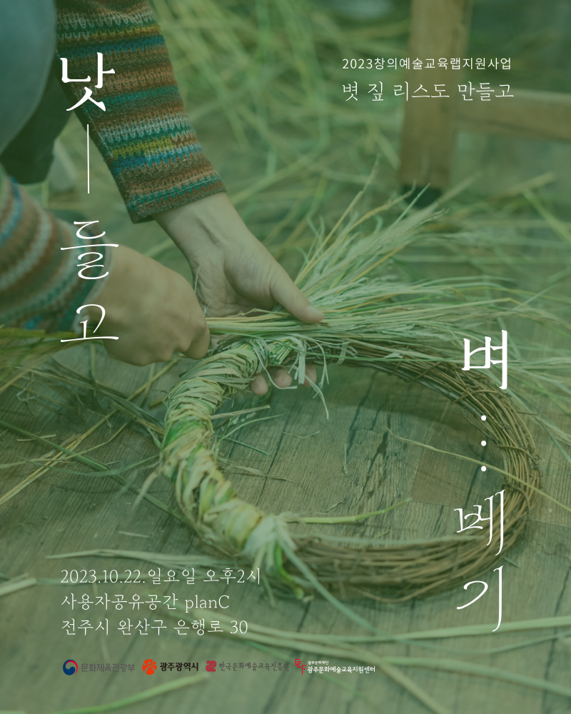 [낫-들고 벼-베기] 제목으로 시민 100명과 함께 지난 6월에 심은 모 추수와 볏짚리스를 만들었답니다.