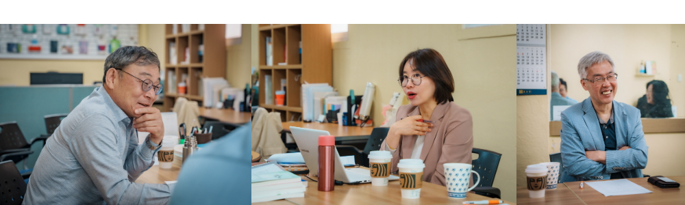 (왼쪽부터)조정태 소장, 한경숙 연구원, 조성국 운영위원 ⓒ청춘기획 라이브온