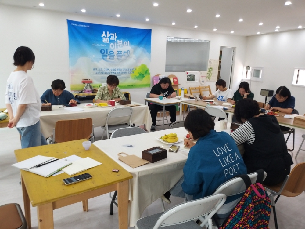 ‘마음놀이터’라는 단체에서 십여 년간 함께 활동해 오던 김옥진 선생님이 어느 날 갑작스레 제안했다. 작년에 양산동 엄마들과 프로그램을 마치고 나서도 동아리를 만들고 버킷리스트를 핑계 삼아 몰려다니던 우리를 보며, 이웃들이 오며 가며 편하게 드나들 수 있는 단체를 만들면 좋겠다는 마음을 나에게 내비쳤다. 문득 문화예술교육 프로그램 참여자로 ‘마음놀이터’에 첫발을 내디뎠던 오래전 그때가 떠올랐다.