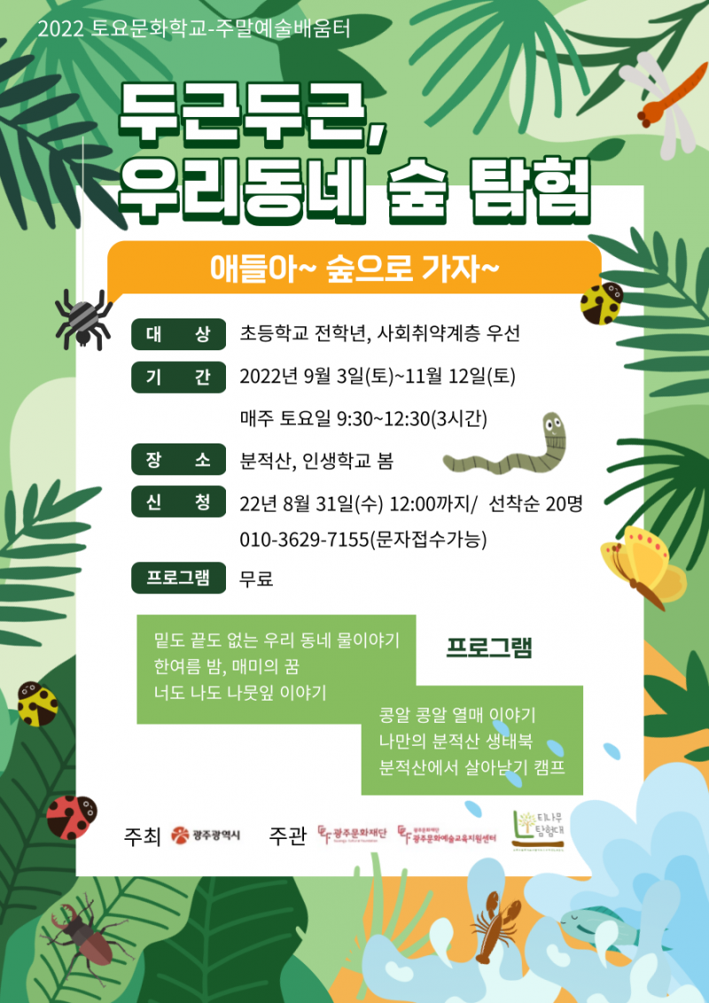 ◎ 2022 토요문화학교 인큐베이팅 선정단체 프로그램 참여자 모집