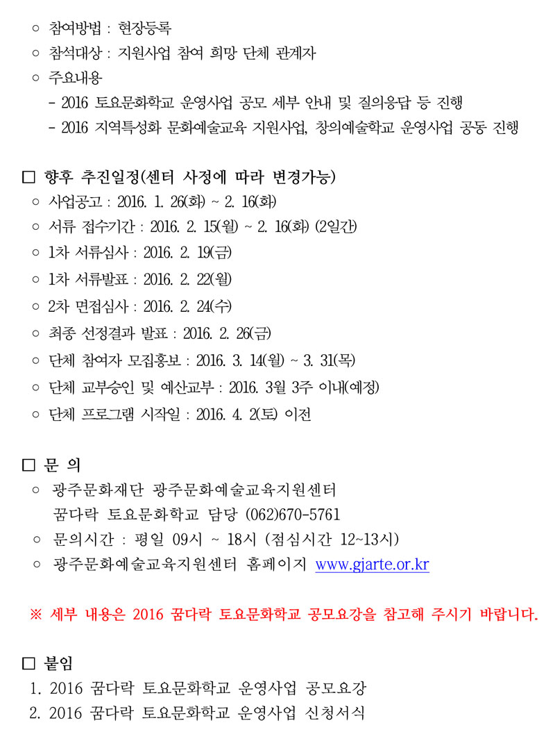 - 2016 꿈다락 토요문화학교 운영사업 모집공고문.hwp [size : 20.5 KB] [다운로드 : 118]