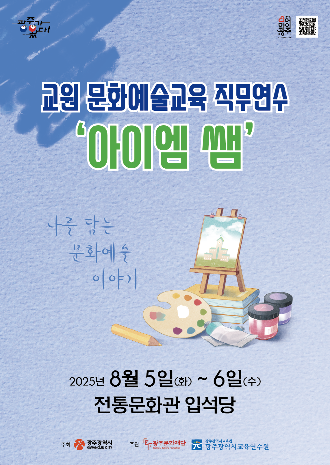교원대상 문화예술교육 직무연수 아이엠쌤 '나를 담는 문화예술 이야기'가 뜨거운 관심으로 모집 마감되었습니다.