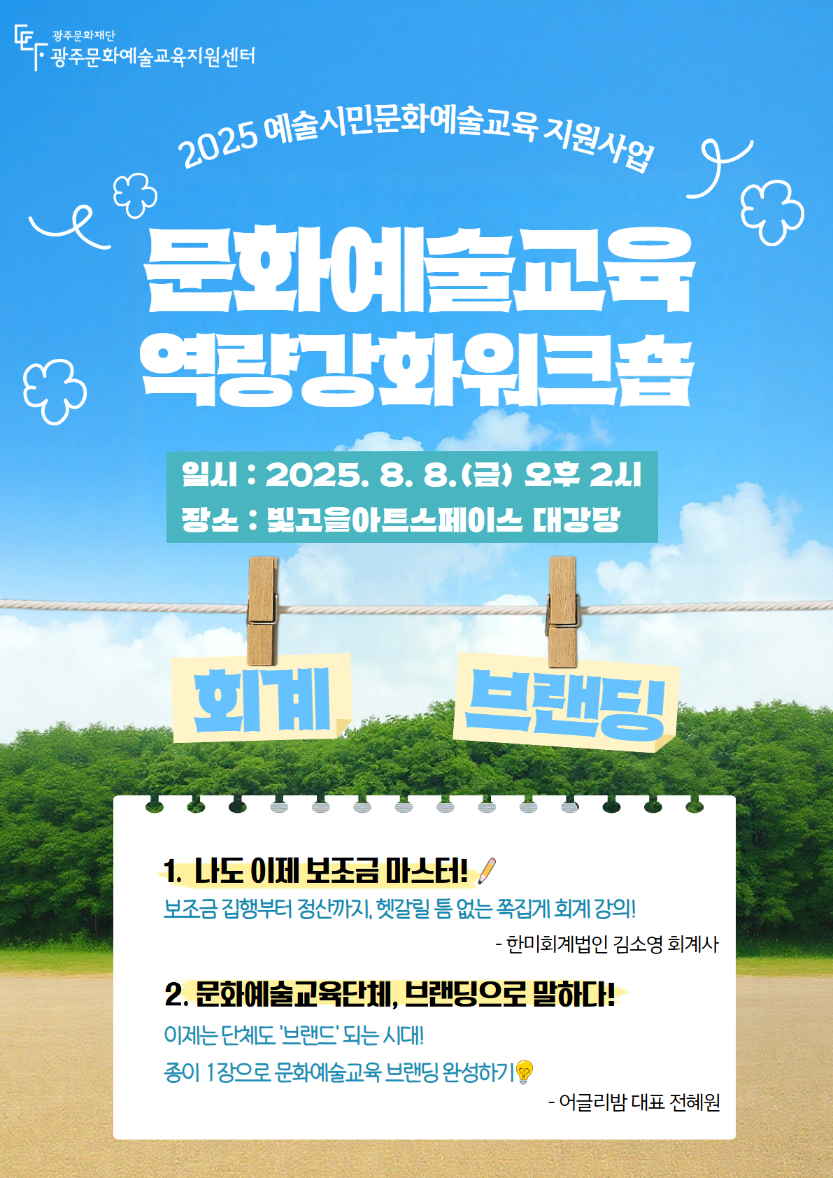 2025 예술시민문화예술교육 지원사업 역량 강화 워크숍이 8월 8일 금요일에 진행됩니다!!