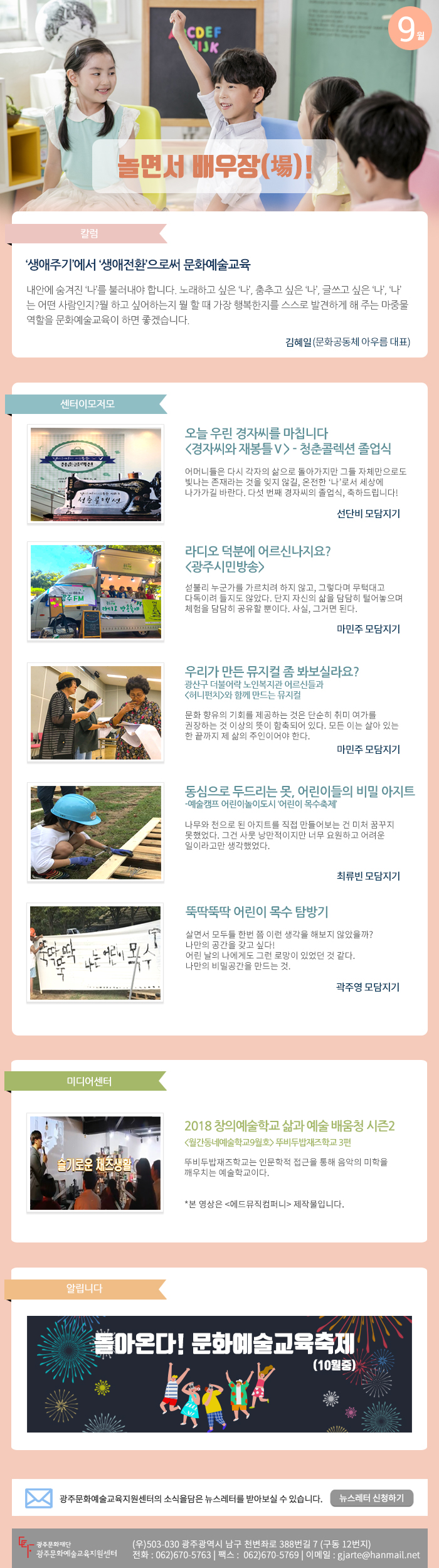 [뉴스레터 75호]놀면서 배우장(場)!_광주문화예술교육지원센터에서 건네는 9월의 편지