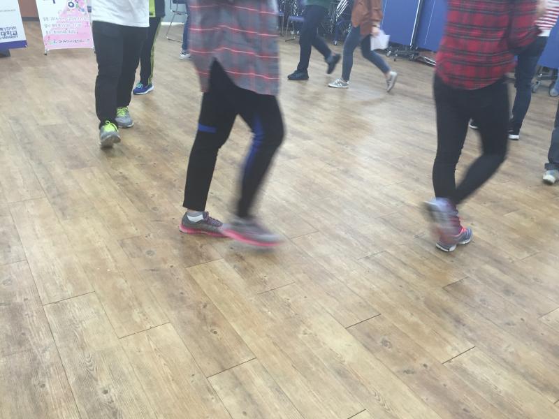 이런 식으로 생선 옆에는 고양이, 돼지는 내 뱃속도 나왔지만 애완이라 가장 좋은 걸로 선택해서 돼지 집으로 결정됐다. 햄스터는 자동차도 나왔다. 한 친구가 말이 안 되는 것 같다고 하자 강사는 우리끼리 만드는 노래라 괜찮다며 시내버스를 말한 친구의 말을 반영하였다. 이렇게 직접 만든 노래를 부르면서 동물 소리도 내보고 그 중에 가장 동물 소리 흉내를 잘 내는 친구가 독창을 하기도 하였다. 이렇게 직접 부른 노래 가사로 부르다보니 학생들은 더욱 즐거워했다. 마지막 시간은 댄스다.