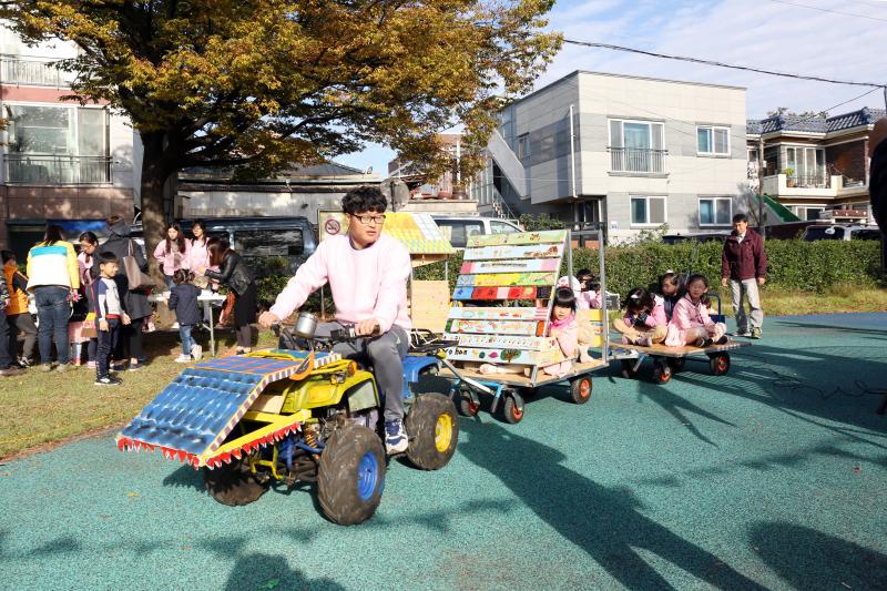 늦가을 비가 내렸던 다음 날, 움직이는 문화예술콘텐츠의 첫 번째 이야기, 찾아가는 예술자전거 ‘아뜨르릉’ 이 풍향어린이공원에서 오후 2시부터 5시까지 진행되었다. 이 프로그램은 3대가 공감할 수 있는, 종이인형 ,만들기, 딱지치기, 제기차기, 구슬치기 등등의 놀이체험을 하고, 옛날 스타일의 김밥을 만들고 이 현장의 신나는 모습들을 영상으로도 담아 보고 쿠키도 만들고 하며 부모님 세대와 현 세대들이 서로의 놀이와 문화를 이해하는 체험의 장이 펼쳐졌다.