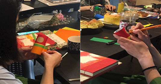 수업을 시작하면서 휴지심과 색종이를 이용해 지난 한 주 자신의 감정을 그려보기로 했다. 지난주에 있었던 일들과 감정들을 돌아보아보면서 그림을 그리고 이야기를 나눴다. 어린 아들이 아파서, 딸이 상을 받아서, 딸이 자신이 좋아하는 음식을 보내서, 집에 돌아온 딸의 표정이 지쳐보여서 엄마도 아프고, 기쁘고, 힘들었다. 엄마들은 사춘기 소녀만큼 예민하고 감수성이 깊었다.