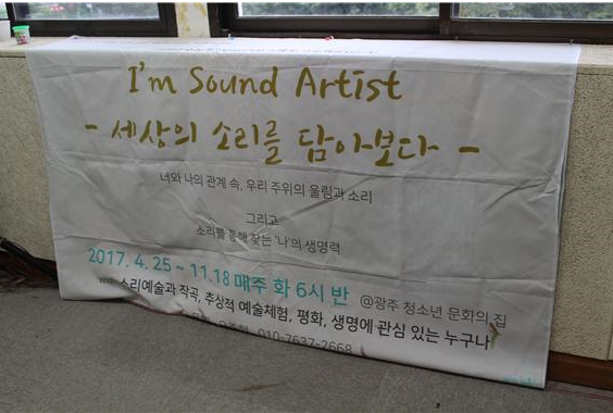평화예술교육센터는 어느 한 공간에서 느껴지는 모든 소리들을 채집하고 이 채집과정에서 느껴졌던 감정들을 공유하며 가장 크게 느껴지는 소리, 가장 인상깊었던 소리, 가장 기분 좋게 느껴졌던 소리들을 찾으면서 이것들을 분석하고 색채, 소리파일 등으로 새롭게 창조해낸다.