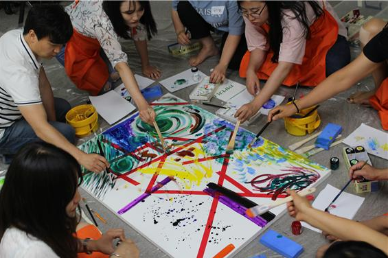이런 소리에 빠져있을 때, 입으로 내는 것 말고 캔버스 위에 색을 칠하는 과정을 거쳐서 소리를 입체화해보기도 했다. 각자가 원하는 색과 공간, 형태로 음악에 맞춰 색을 나타내기 시작했다.