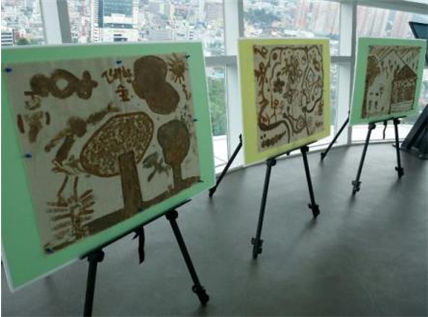 4월부터 매주 토요일 세 시간씩 진행된 프로그램의 결과물은 다양한 작품으로 변신해있었다. 작품 중 가장 눈에 띈 것은 바로 ‘흙으로 만든 그림’이었다. 흙으로 땅에 그림을 그리는 것만 했지 종이에 흙 그림 그리는 것이 가능하다는 게 실로 놀라웠다. ‘소중하게 만져 봄’이라는 교육 제목으로 내용은 아이들이 숲을 탐방하고 여러 가지 흙들을 채집하는 과정을 거쳤다. 그리고 흙가루로 땅 속에 누가 사는지 이야기를 나누고, 그림을 그린 수업의 결과물이었다. 흙으로 만들었다고 하기에 믿기지 않을 만큼 멋진 작품이었다.