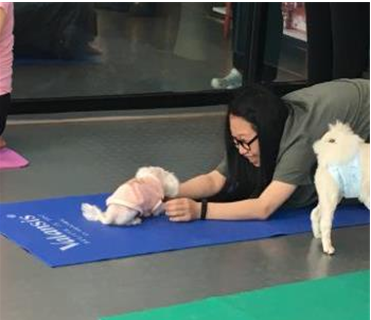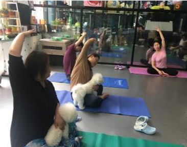 요가의 또 다른 참여자인 쌍둥이 같은 두 마리의 비숑 프리제은 주인의 품에 안겨있다. 옆구리를 늘려주는 동작을 따라하는 주인의 품에 안겨 주인의 편안함을 고스란히 느끼고 있었다. 두 비숑 프리제는 부부인데, 주인에게 받은 사랑과 요가를 하며 얻은 안정감 때문인지 수업이 끝나고 애교를 보여주며 사람들의 시선을 끌었다. 사랑받은 강아지들은 다시 사람들에게 사랑을 나눠주고 있었다.