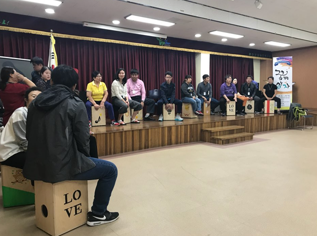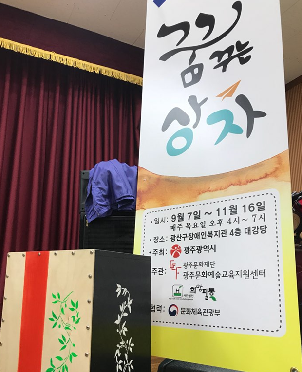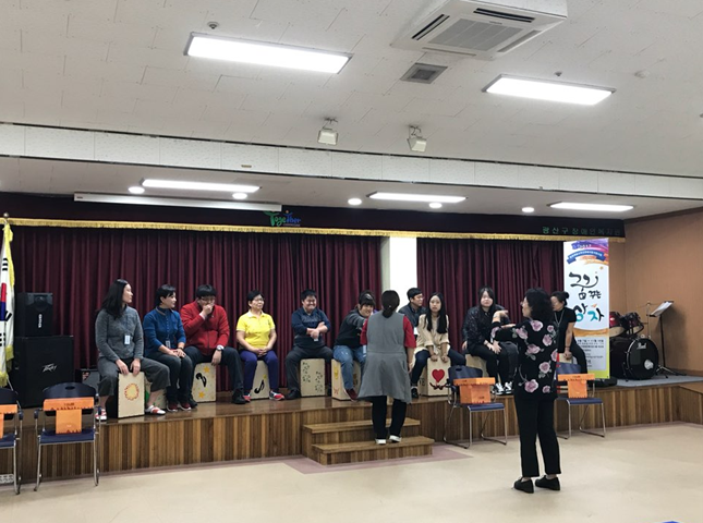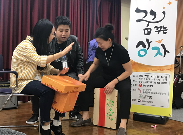 20여명 남짓한 사람들과 카혼을 두드리며 소리를 만들어 내는 시간을 갖는다. 게임을 하면서 인내심과 협동심을 기르고 사회성을 키운다. 그들은 카혼을 만지고 드릴질하고 스탠실까지 입혀가면서 손수 제작해서 애정이 남다르다. 이들이 있는 이곳은 광산구장애인복지관이다.