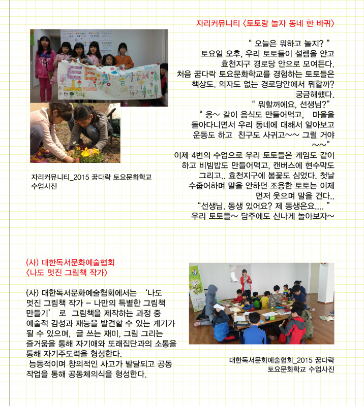<2015 꿈다락 토요문화학교> 띵동~ 문자가 왔습니다!