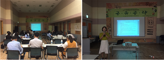 2017년 문화예술교육기획자 양성과정 공.유.공.락(共·遊·共·樂)이 지난 7월 26일 유종의 미를 거두었다. 무더웠던 여름, 총 14번의 만남을 통해 함께 놀며, 함께 즐기는 문화예술교육을 알아가는 기회가 되었다. 4개의 팀은 매주 조별활동을 통해 장소를 기반으로 한 문화예술교육프로그램을 기획하고, 마지막 만남에는 발표하는 시간을 갖는다. 열정으로 가득 찼던 공유공락의 결과발표회 현장을 들여다보자.