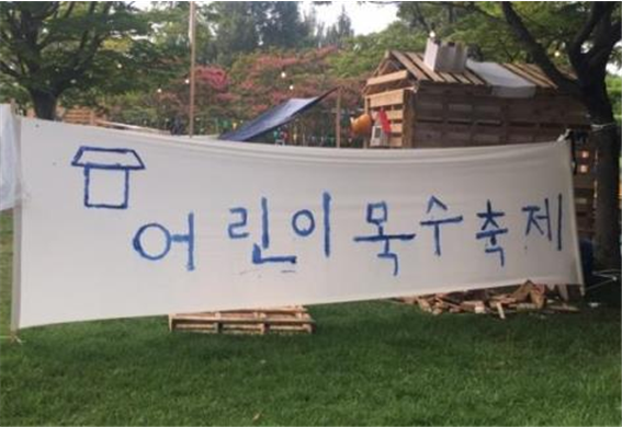 <어린이 목수축제>는 8월 17일부터 19일까지 2박 3일 동안 망치와 톱 하나로 어린이들만의 아지트 마을을 만드는 미션을 수행하는 프로그램이다. 10명이 팀으로 이루어져 총 8팀으로 80명의 어린이들이 참여한 축제는 벌써 3회째를 맞이하고 있다. 어린이 놀이도시는 1회는 종이집을 2회는 시청에 놀이터를 3회는 나무 집으로 아이들만의 공간을 만드는 기획으로 회를 거듭할수록 부모님들의 호응이 뜨거웠다. 이번에도 모집 3일 만에 마감될 정도로 어린이들의 참여도가 높았다.