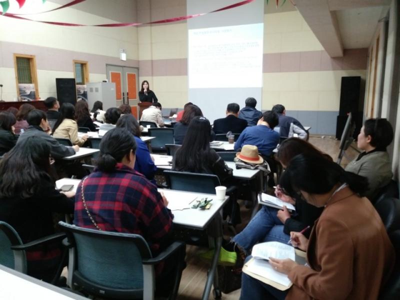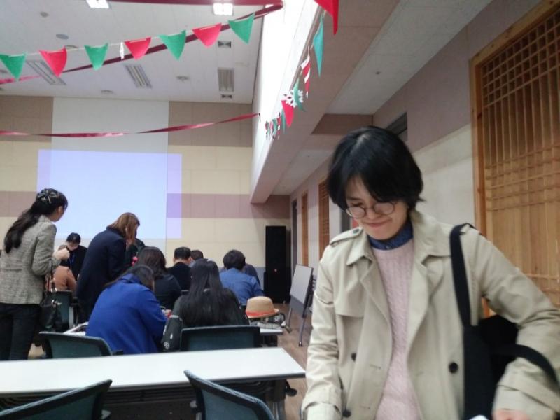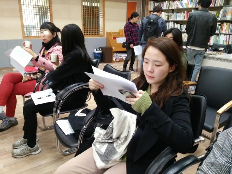 ▲오리엔테이션에 집중하고 있는 트렌치코트를 입으신 ‘시소’의 김유리 선생님