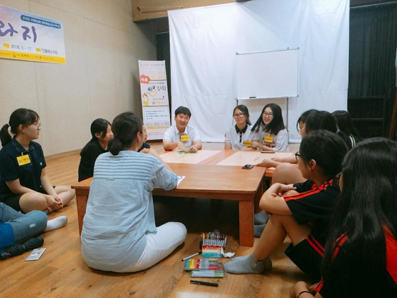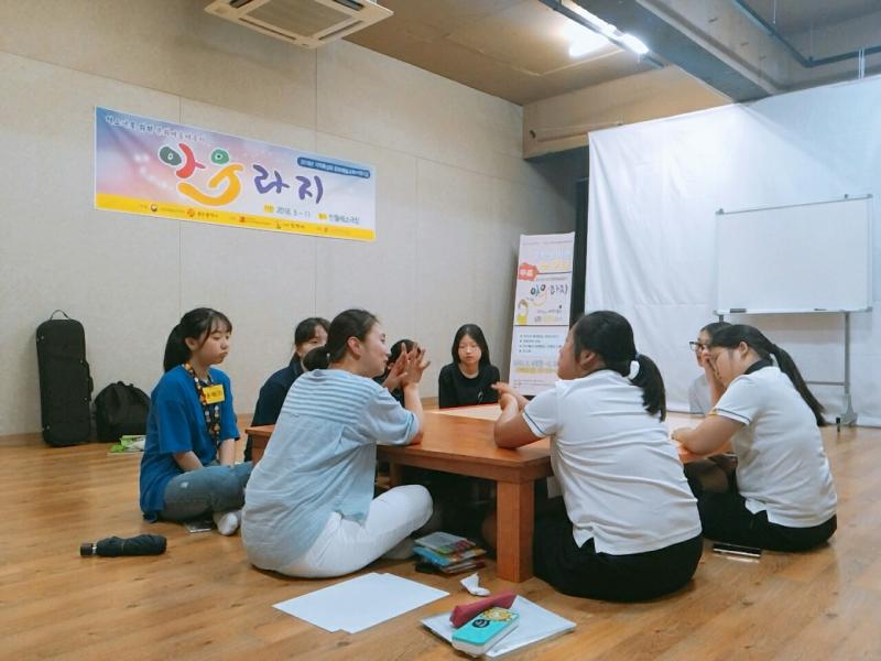 하나둘씩 선생님 곁으로 모인 청소년들은 오늘의 프로그램에 대해 호기심 어린 눈으로 바라보며, 연극이 익숙하다는 듯, 스스럼없이 자신의 의견을 표하고 선생님은 청소년의 의견을 거리낌 없이 수용하는 모습이 보인다.
