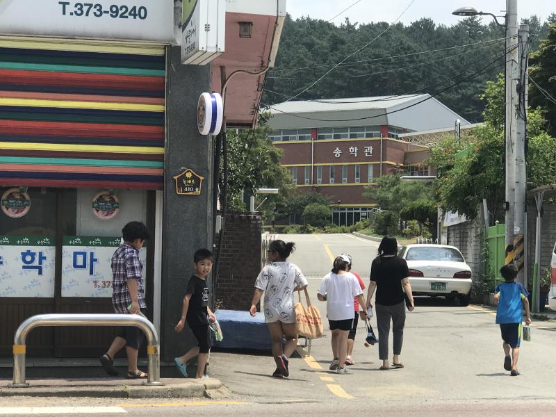A. 꼭 송학초등학교 아이들을 대상으로 하는 건 아니고요. 이 마을에 사는 아이들을 대상으로 진행하고 있어요. 이 마을이 세동 마을이고 저 밑에 동화 마을, 서창 마을이 있어요. 근처에 사는 초등학생 전 학년을 대상으로 프로그램을 진행하고 있습니다.