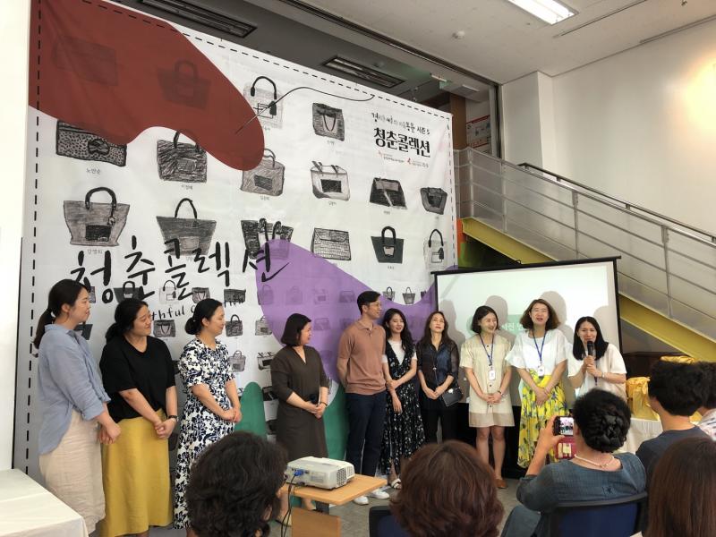 현장에서는 어머니들의 가방 소개와 함께 수료증 수여식이 진행되었다. 꽃다발을 받은 어머니께서 환한 미소를 띄며 감사 인사를 전하면 모두 박수로 응해주었다. 이후엔 프로그램에 버팀목이 되어 준 이들이 강단 앞에 모여 소감들을 하나 둘 풀어간다. 그들 하나하나만 놓고 본다면 공통분모를 찾아보기 힘든 조합들이지만 ‘경자씨'란 교차점으로 이야기꽃을 피웠다. 각자의 위치에서 서로 다른 일들을 수행해왔지만 마음은 늘 경자씨와 함께 달려왔음을 느낄 수 있었다. 어느새 화기애애한 분위기로 조성된 현장이다.