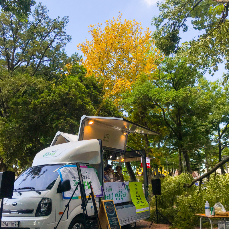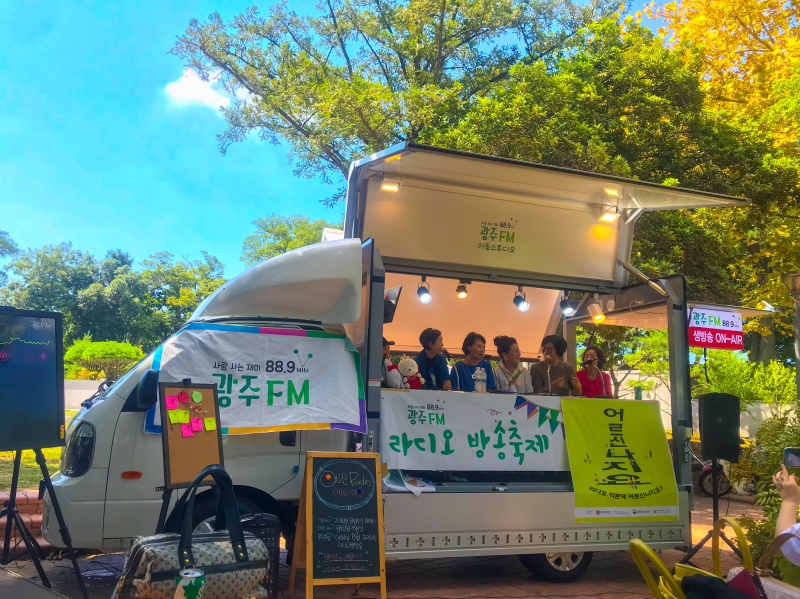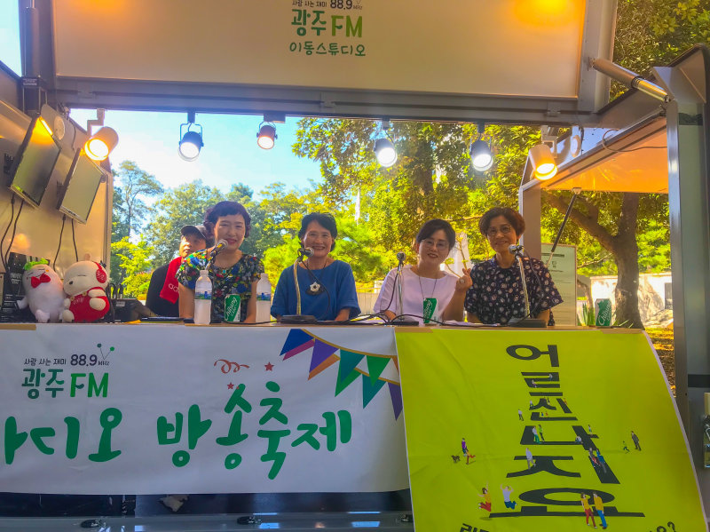 2018년 8월 15일, 가수 최 진희가 부른 <뒤늦은 후회>가 광주공원에 울려 퍼지고 있었다. 노랫소리를 따라가자 더위를 피해 커다란 나무 그늘 아래서 쉬고 계시는 어르신들을 만날 수 있었다. 흥겹게 노래를 따라 부르는 어르신들이 모여 있는 곳에는 라디오 축제가 한참이었다. 바로 광주시민방송이 제작한 ‘어르신나지요 (어르신 RADIO) 축제’가 현충 석탑 일대에서 이뤄지고 있었다. ‘어르신나지요 축제’는 자신들의 경험을 담아 제작한 시나리오를 바탕으로 어르신들이 직접 출연하여 라디오 방송의 전반적인 과정에 실질적인 참여를 돕는 프로그램이다.