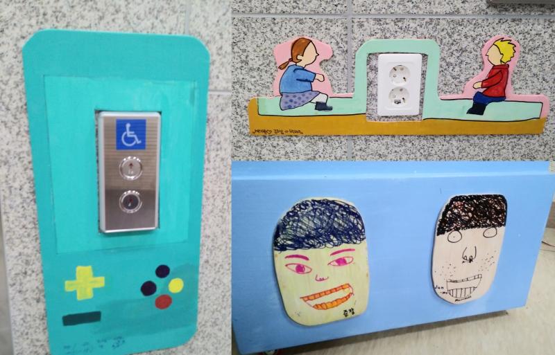 ▲ 게임기가 된 엘리베이터 버튼과 곳곳에 닿은 아이들의 손길