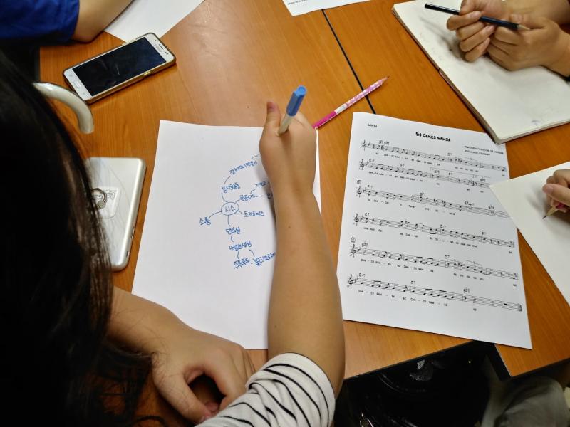 그런 어색함과 부끄러움 속에서 본격적으로 ‘재즈’ 맛보기 시간으로써, 시소학교에서 경험한 것들을 가지고 직접 가사를 만들어 보는 시간이 시작됐다. 하얀 종이 위에 참여자들은 그동안의 시소학교에서 경험한 목공시간을 떠올리며 빈 종이를 채워가기 시작했다.