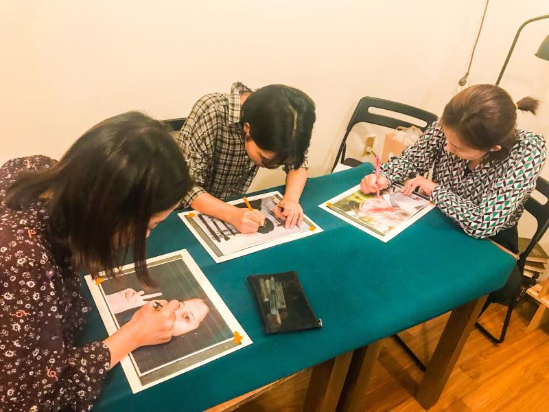 나르시시스트에 대해 언급하면서 청년인문살롱 수업은 팝아트 자화상 그리기 시간으로 이어졌다. 셀카를 덧대어 밑그림을 그린 후 그 위에 물감으로 칠하는 과정을 거치면 자신의 자화상이 탄생한다. 자신의 얼굴을 자세히 관찰할 수 있는 기회이자 일반적이진 않을 수 있어도 자신이 원하는 색깔로 그림을 채워 개성을 드러낼 수 있는 시간이었다. 처음에는 자신을 그리는 것에 대해 부끄러워했던 청년들도 자신의 얼굴을 스케치하고 색을 덧대면서 자화상 그리기에 빠져드는 모습을 볼 수 있었다.