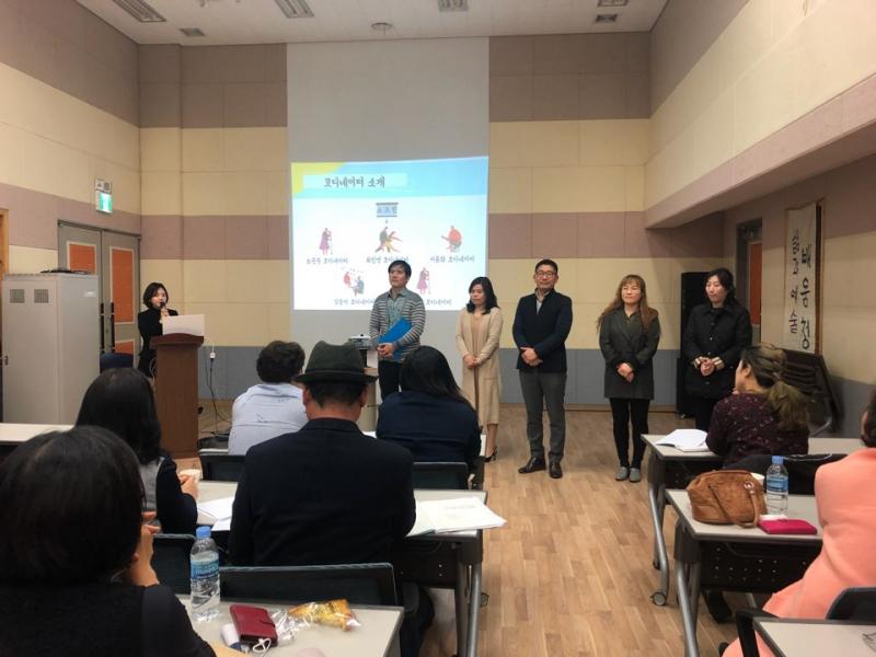 광주예술동아리사업은 예술을 사랑하는 지역의 아마추어들이 동아리를 만들고 그들의 창작역량을 강화하기 위한 사업이다. 총 33개의 예술동아리는 다양한 장르(미술·무용·음악·국악·서예·미디어·연극·사진·공예·문학 등)로 구성되어있다. 워크숍은 담당자가 사업 소개와 올해부터 달라지는 내용들, 문화코디네이터 소개 및 조별 만남 순으로 진행되었다.