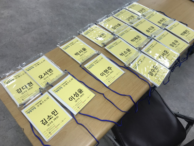 △‘엉망진창 오케스트라’ 단원들이 이름표와 깃발을 꾸미는 모습