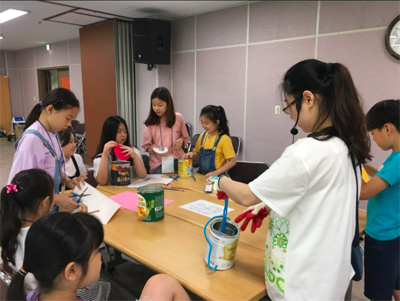 “이거 가지고 뭐 해요? 들고 다니면서 악기 연주해요?”라고 물으며 깃발을 휘두르는 아이들에게서 벌써 설레는 마음과 기대감을 느낄 수 있었다. 이번이 두 번째 프로그램 참여라는 금구초 6학년 유수인 학생은 “직접 악기를 만들고 간식 먹는 시간도 기다려지지만, 무엇보다 사람들 앞에서 공연 한 경험이 가장 즐거웠다며 앞으로 버스킹을 할 수 있었으면 좋겠다”고 말했다. 올해는 같은 학교에 다닌다는 양예서 친구와 함께 ‘엉망진창 오케스트라’의 단원이 되었다. 열심히 깃발을 꾸미는 모습에 두 친구가 만들 악기와 음악 소리가 벌써부터 궁금해졌다.