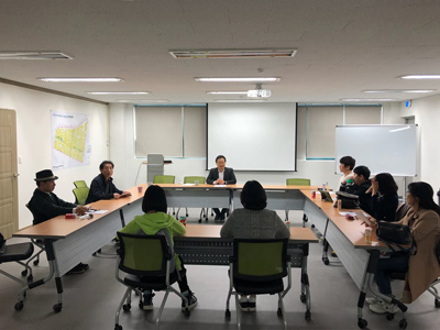 “간뎃골 영화교실”은 주민들과 마을영화를 제작하고 마을영화 축제를 여는 문화예술교육프로그램이다. 필름에이지의 대표이자 영화감독인 윤수안 대표가 오리엔테이션을 진행한다. 2019년 4월부터 11월까지 총 8개월간 여정을 함께할 주민들이 참석했다. 교육장소는 주로 중흥2동 주민센터가 된다. 오리엔테이션은 대표님과 시나리오 작가님이 오셔서 프로그램 세부 내용을 주민들에게 공유하고 각자 자기소개를 하는 순서대로 진행되었다. 그리고 작년에 제작된 중흥2동 마을영화 <봉사왕>을 잠시 감상하는 시간도 가졌다.