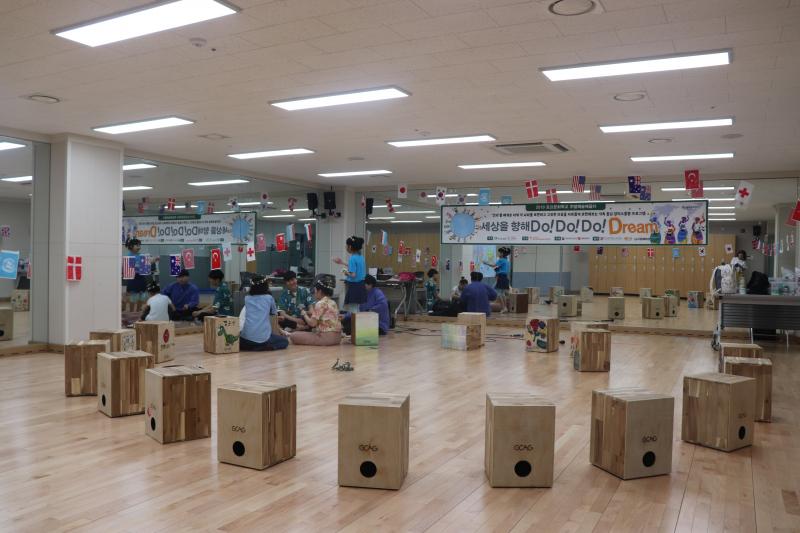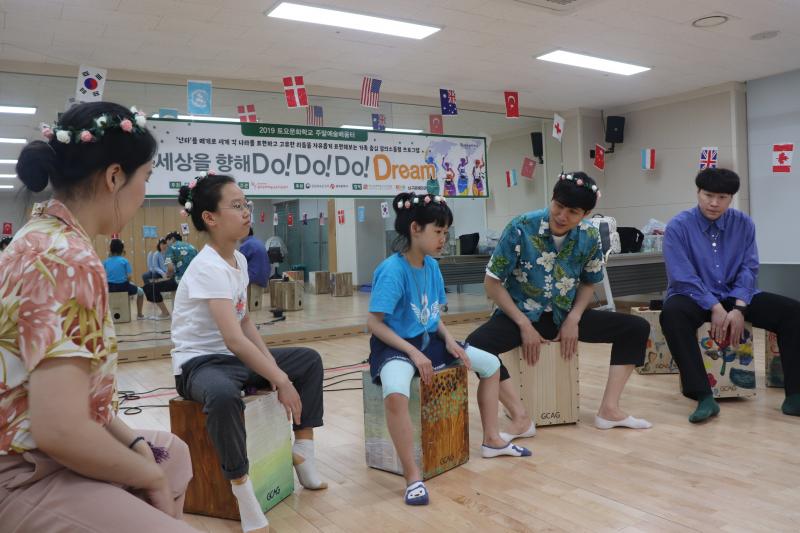 “기본적으로 여행도구인 타악기 카혼을 통해 각 나라의 대표적인 음악을 표현합니다. 세계 여러 나라를 그림으로 표현하고 전통의상도 만들어보는 미술체험활동도 더불어 하고 있습니다.”