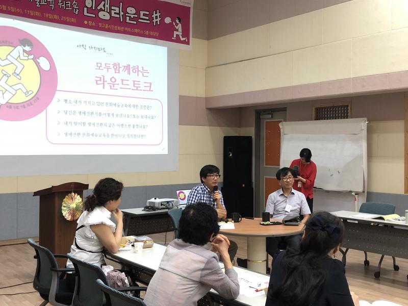 인생 전환기 시점을 맞은 광주 시민을 위한 '인생라운드#' 워크숍이 지난 6월, 4주간 진행되었다. 광주 시민들이 문화예술교육을 통해 더욱 풍요로운 생애전환기를 보낼 수 있도록 광주문화재단에서 특별한 강의를 마련했다. 전 차시 출석자에게는 광주문화재단 대표이사 명의로 수료증이 발급된다. 1차시는 전체적인 오리엔테이션, 2차시는 아동·청소년 대상으로, 3차시는 청년 대상으로, 4차시는 신중년을 대상으로 진행되었다. 특강을 마치면 라운드토크로 강연자와 시민들과의 자유로운 소통이 시작된다.