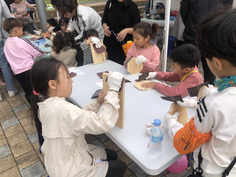우당탕 목공소 체험을 기획한 생활정치발전소는 현재 ‘마을을 그리는 꼬마 쉐프’라는 프로그램을 진행하고 있다. 나무로 무엇인가를 만들어서 마을을 꾸미는 중인데, 서창동의 문제 중 하나인 주차문제를 아이들과 함께 주차금지 나무화분을 만들어 해결하고 있다고 한다. 나무를 이용해 마을을 꾸미고 정화하는 프로그램들을 진행 중이기에 우당탕 목공소를 기획했다고 했다. 체험이 진행되는 것을 지켜보니, 자신이 직접 사과·모과나무를 이용해 냄비받침을 만들고 도마를 만드는 것을 어린이들이 정말 좋아하고 흥미를 느낀다는 것이 보였다. 식사할 때마다 자신이 만든 냄비받침을 쓸 것이라는 어린이도 있었다. 옆에서 진행되는 어린이 목수 축제에 참가하는 몇몇 아이들도 이 체험에 참여했다. 이미 여러 번 해본 작업이라며 능숙하게 사포질을 하는데, 그 모습이 프로 목수 같아 감탄사가 절로 나왔다.
