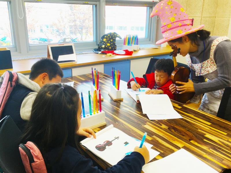 이어서 아이들의 발걸음은 동화 바이올린 미술관으로 향했다. 고사리 같은 자그마한 손으로 요정가족의 구성원들을 색칠하면서 그들과 긴밀히 마주한다. 아빠 지르솔은 노란색, 엄마 디오레는 파란색, 나 에이라는 주황색, 동생 이에미는 하늘색. 이렇게 각 음계에 맞는 요정가족의 색깔은 아이들이 동화 속 장면을 직접 손으로 만들 듯 멜로디와 함께 기억된다. 색감과 음정, 그리고 동화 속 주인공인 요정 가족들은 아이들에게 있어 평생 함께 하는 친구와 같다. 꾹꾹 색연필로 눌러 칠할 때마다 바이올린 줄 위를 뛰노는 요정들을 상상해본다.
