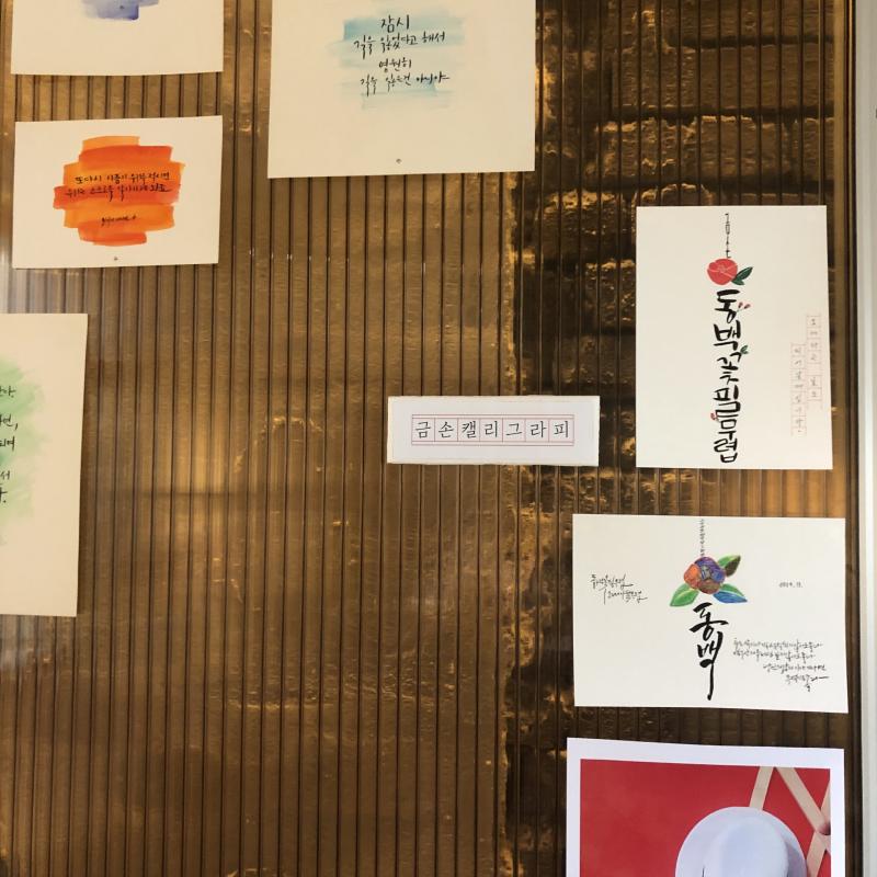 내가 쓰는 모든 글이 감동이 되는 순간을 바라며 만들어진 금손캘리그라피는 동아리의 회장이 직접 캘리그라피에 관심 있는 분들과 함께 마음을 담은 글씨를 써보고자 동아리를 결성하게 되었다. 하란방, 코리안티크와의 콜라보 전시에 이르기까지 총 6개월간 교육이 이루어졌고 기본 붓 펜 사용법, 자음과 모음, 한글자, 두글자, 구조잡기, 간단한 일러스트, 짧은 문장, 긴 문장, 수채화 수업, 칼라 붓펜 활용한 작품 만들기 등으로 교육이 진행되었다.