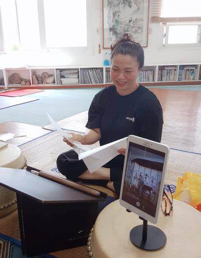 A. 오늘 이렇게 수업을 해보니, 답답하기는 합니다. 내가 나이가 들어서 그동안 얼굴을 맞대고 수업을 하는 것이 익숙한데 우리 제자들 하는 것을 집어주고 고쳐줘야 좋은 소리가 되고 그럴 텐데... 그렇지 못해서 사실 조금 답답합니다. 그러나 지금 상황이 어쩔 수 없어서 이렇게라도 우리 것을 알릴 수 있다는 게 다행이라고 생각합니다.
