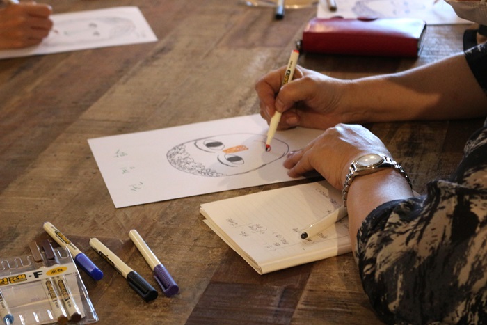 오늘 경자씨들은 나 자신을 온전히 알기 전에 먼저 서로를 알아가는 시간을 가졌다. 빈 종이에 서로의 얼굴을 한 부분씩 그려나가며 서로를 관찰했다. 서툰 솜씨로 그린 그림이지만 완성된 그림을 보니 신기하게 서로를 닮아 있었다. 그리고 서로에게 하고 싶은 이야기까지 적으며 아이스브레이킹 시간을 가졌다. 그리고 새로운 종이를 꺼내 들어 자신이 지금 생각나는 것을 아무거나 그린 후 짝을 지어 상대에게 자신의 그림과 자신의 현재 생각을 설명했다. 이후 참여자들은 앞으로 나와 자기 짝의 이야기를 발표하는 시간을 가졌다.