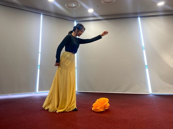 강사님의 시범 춤이 이어지고 지영씨들은 앉아 관람합니다. 꽃과 ‘나’는 서로 거울을 통해 바라보는 존재로서, 꽃을 곧 ‘나’입니다. ‘나’는 꽃을 들고 여정을 떠납니다. 꽃길을 걸으면서 꽃을 심어준 ‘나’는 이내 충만함을 느끼며 여정에서 돌아오는 내용의 무용입니다. 강사님의 시범 춤이 끝난 뒤, 지영씨들은 모두 박수를 치며 자리에서 일어납니다. 이젠 내가 출 차례이기 때문입니다.