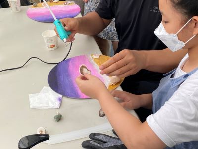 <아트 패밀리가 떴다!>는 가족과 함께 미술 작품 제작을 통해 창의력과 미술표현 방법 및 유대감 강화를 위한 프로그램으로써 총 20차시로 구성, 매주 토요일 오전 10:00~12:00까지 진행된다. 취재 날은 6차시 <바다 액자 만들기>로서 가족 휴가로 떠났던 여름 바다를 떠올리며 이를 아크릴 물감, 조개껍질 등의 재료를 이용해 표현하는 시간이었다. 선생님의 그림 기법 설명에 귀를 기울이며 듣는 아이들의 모습이 벌써 여름휴가의 바닷가를 떠올리고 이를 어떻게 표현할지 제법 진지하게 고민하는 듯 보였다.